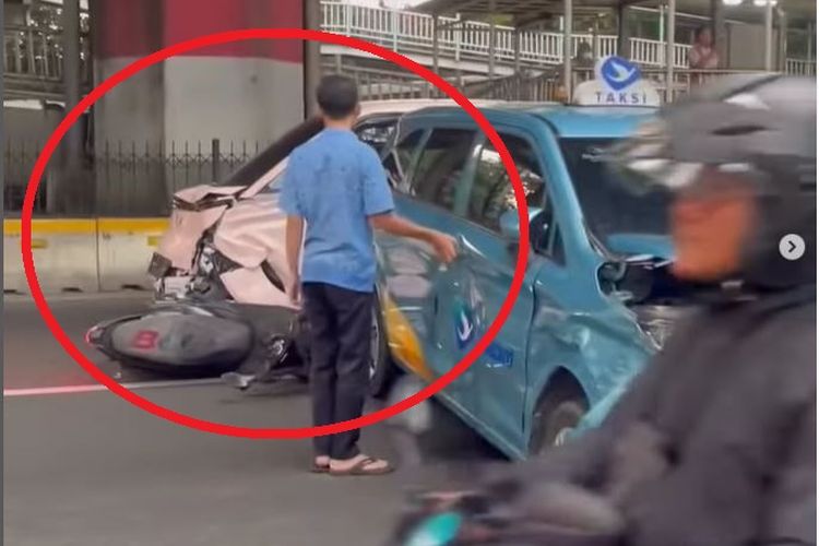 Kecelakaan beruntun Wuling Air EV, Toyota Fortuner, Honda Mobilio, Toyota Transmover, Daihatsu Sigra dan dua motor di Halte Utan Kayu Rawamangun