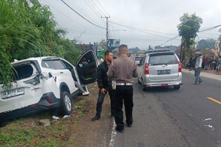 Kecelakaan truk tronton Isuzu Giga kehilangan rem di Baturiti, Tabanan, Bali menampar Daihatsu Terios dan dua Toyota Rush hingga terpelanting