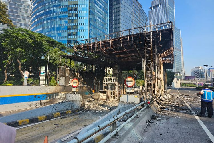 Hingga Sabtu pagi, ruas Jalan Tol Cawang-Tomang-Pluit masih belum dapat dilalui akibat kerusakan berat .