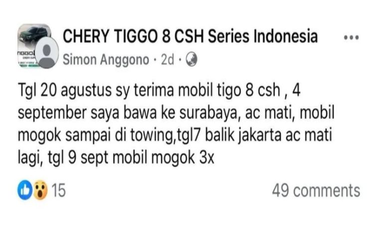 Chery Tiggo 8 CSH viral di Facebook karena mesin mendadak mogok. Untungnya masalah tersebut sudah teratasi dengan cara seperti ini.