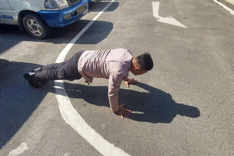 Brigadir Surya Siregar, anggota Polsek Medan Timur yang terekam merokok sambil mengemudikan mobil patroli dihukum push up sampai lari