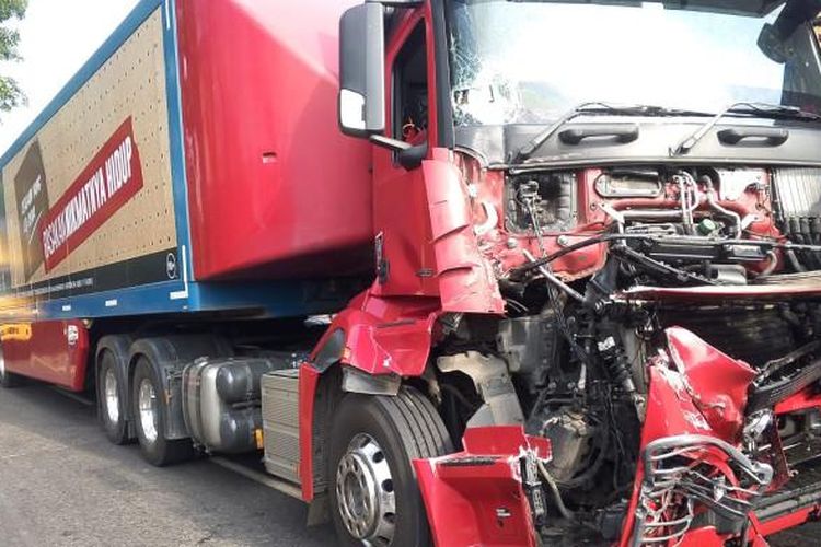 Truk Trailer Mercy Actros Gudang Garam Hancur Parah, Onderdil Kabin Terburai Musuh Sesama Gede