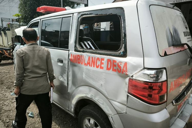 Ambulans desa Selajambe, kabupaten Sukabumi, Jawa Barat terguling hingga bodi kiri terparut aspal saat angkut pasien patah tulang