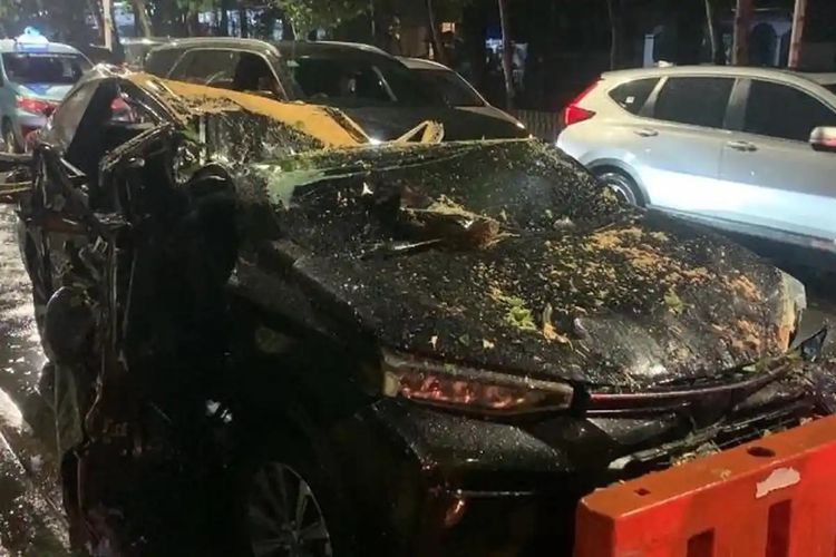 Pengemudi Toyota Avanza meninggal dunia usai digebrak pohon tumbang di Jalan Dharmawangsa, Kebayoran Baru, Jakarta Selatan.