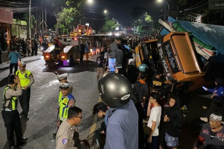 Sebuah truk muat rongsokan jadi biang babak belur truk boks dan Avanza di jalan menurun Banyumanik, Semarang. Ini kronologinya