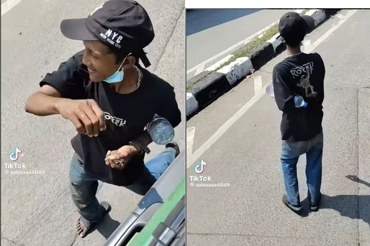 Viral aksi pak ogah jualan air mineral ke sopir truk tapi secara paksa di simpang lima Semper, Koja, Jakarta Utara