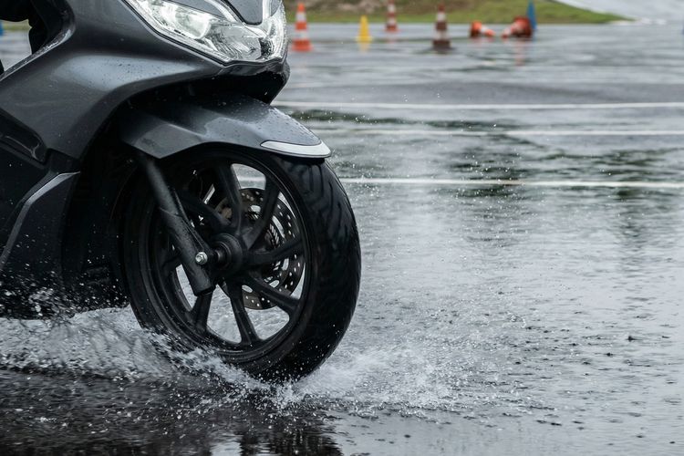 Musim hujan tiba! Pelajari teknik pengereman motor matic di jalan licin biar selalu aman saat di jalan.