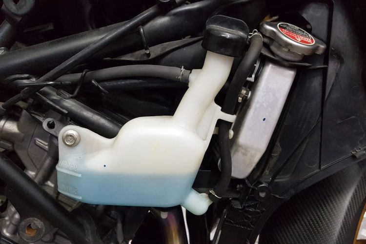Kalau tabung cadangan air radiator di motor bekas ini bermasalah, sistem pendinginan mesin di motor bisa terganggu.