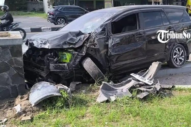 Innova Rebron babak belur bagian depan usai melaju 70 km/jam dan tabrak tembok parkiran Koramil di Klaten. Begini kronologinya