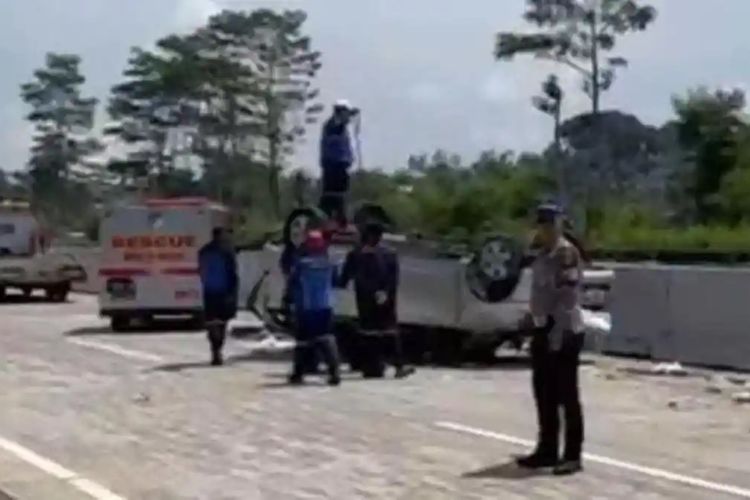 Kijang Innova Zenix congkel Innova di depannya sampi jungkir balik di Tol Cisumdawu. Dugaan sopir kurang kuasai medan jalan