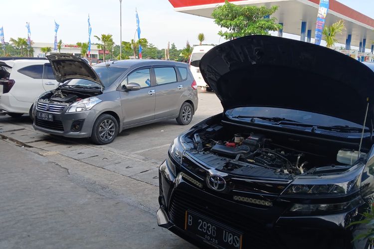 Kerap ditemukan pemilik mobil buka kap mesin sembari beristirahat di rest area saat libur akhir tahun.