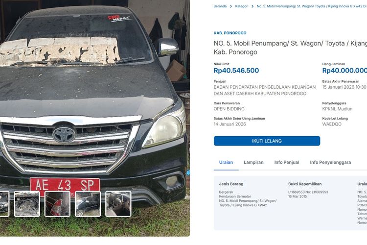 Pemerintah Kabupaten Ponorogo lelang 50 motor dan 13 mobil berbagai kondisi, Toyota Rush Rp 29,2 juta sampai Kijang Innova G 2015 Rp 40,5 juta