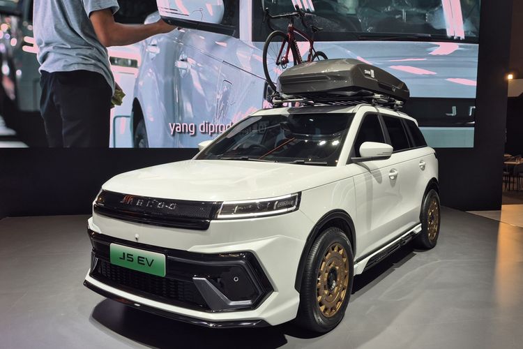 JAECOO menampilkan J5 EV dengan sentuhan Co-Creation di IIMS 2026, memperlihatkan contoh modifikasi dan opsi personalisasi yang bisa dipilih konsumen.