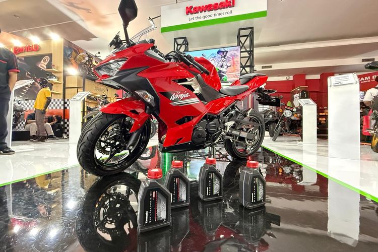 Oli Kawasaki Premium Oil by Motul dengan spesifikasi viskositas 10W-40 gratis dibagikan buat konsumn Kawasaki di IIMS 2026