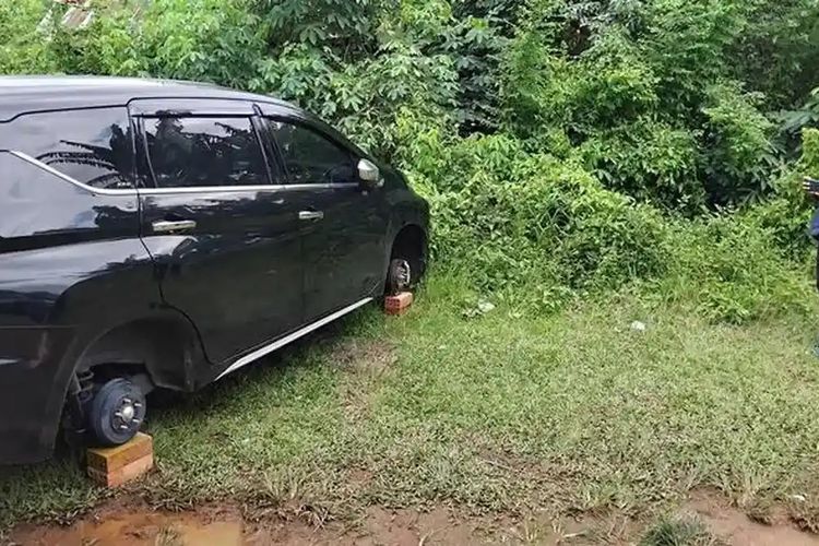 Pemilik Mitsubishi Xpander dibuat kaget saat bangun di pagi hari. empat roda Xpander miliknya raib dan berganti menjadi batu bata