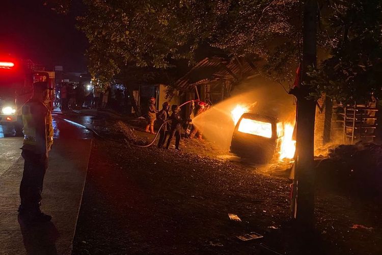 Mitsubishi Colt T120SS bak mobil hantu di jalan raya nasional III, desa Jabres, Sruweng, kabupaten Kebumen, Jawa Tengah, terbakar melaju tanpa sopir