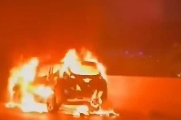 Mitsubishi Xpander ludes diserbu api luar dakam di Tol Jagorawi. Petaka muncul berawal dari bagian depan mobil
