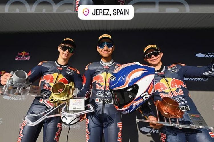 Kiandra Ramadhipa Menggila di Jerez, Start P17 Berakhir Menang di Red Bull MotoGP Rookies Cup 2026
