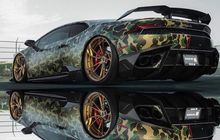 Salah satu super car ini yaitu Lamborghini Huracan dibalut dua corak yang berbeda, yaitu setengah camo dan setengah hitam satin.