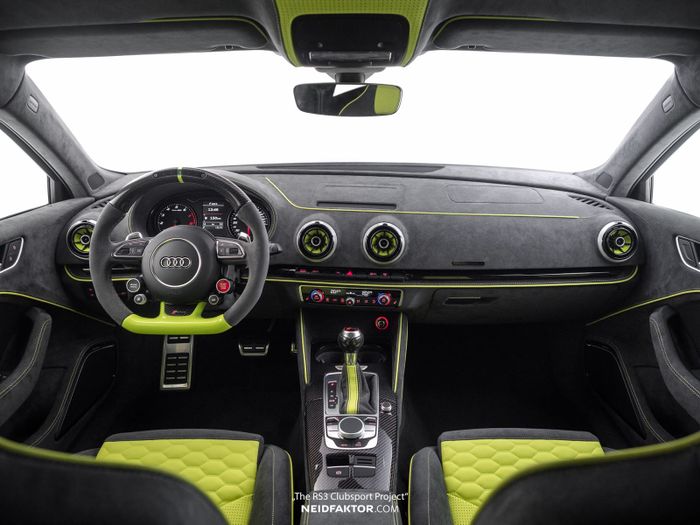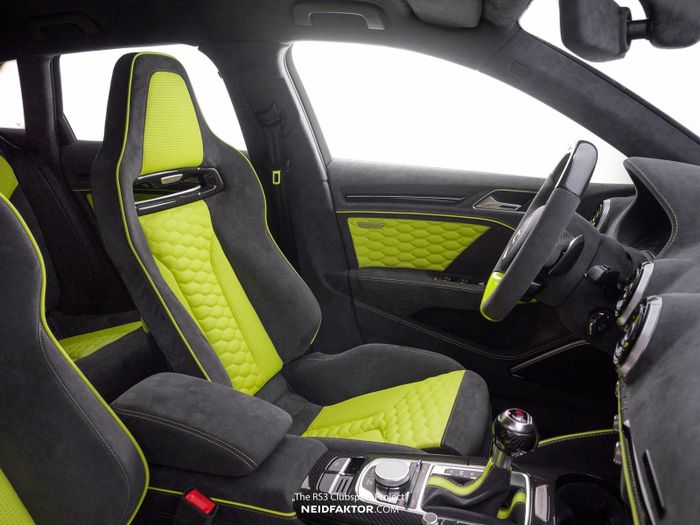 Neidfaktor membuat interior Audi RS3 lebih segar karena dilabur warna kuning neon yang cerah.