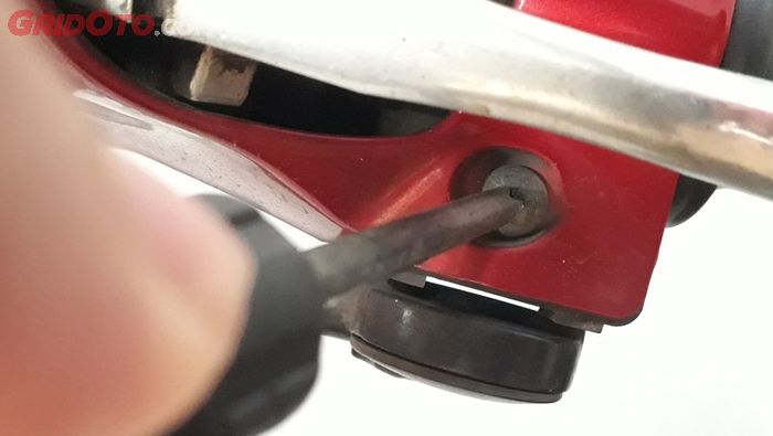 2. Buka sekrup pengunci batok setang menggunakan obeng plus.