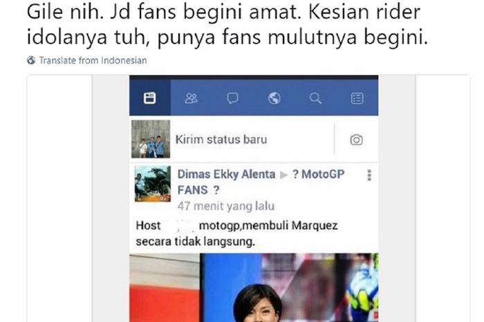 "Gile nih. jd fans begini amat. kesian rider idolanya tuh, punya fans mulutnya begini," tulis Lucy Wiryono di akun twitternya.