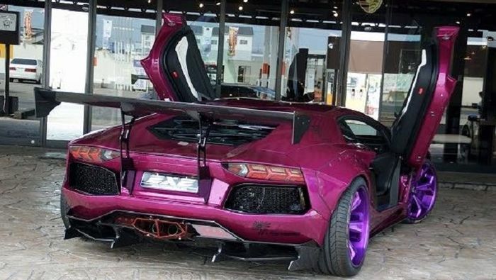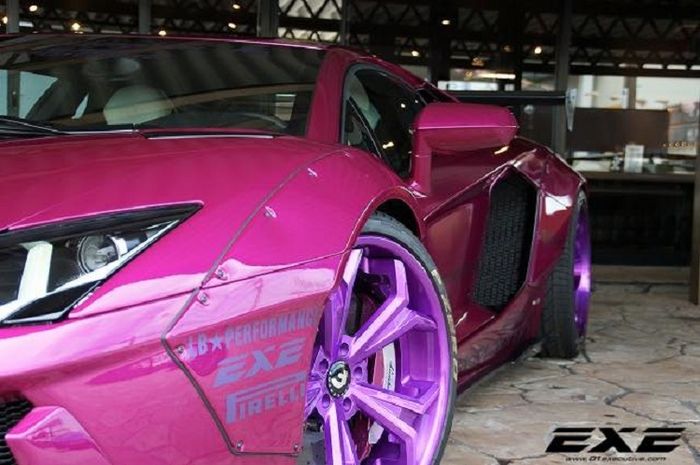 Liberty Walk membuat karya unik lain yaitu mengubah tampilan Lamborghini Aventador dengan balutan warna ungu.