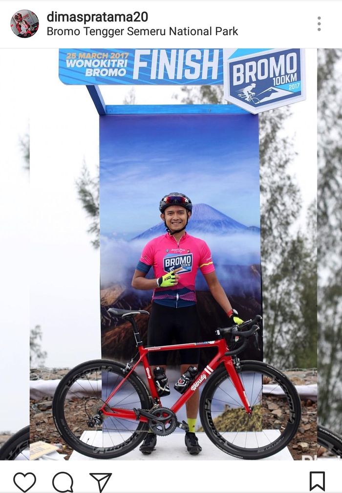 1. Dimas Ekky saat mengikuti lomba Bromo 100km dengan menggunakan sepeda.