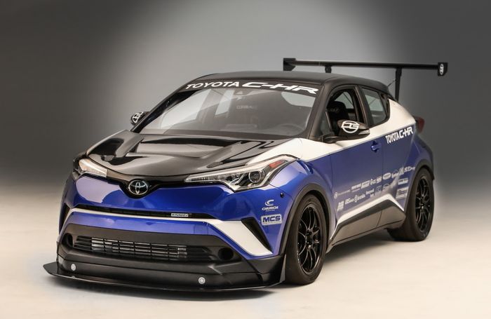 Modifikasi C-HR ini mencangkup rem racing Brembo, ban racing Toyota dan suspensi DG-Spec Motion Control Suspension yang bisa triple-adjustable.