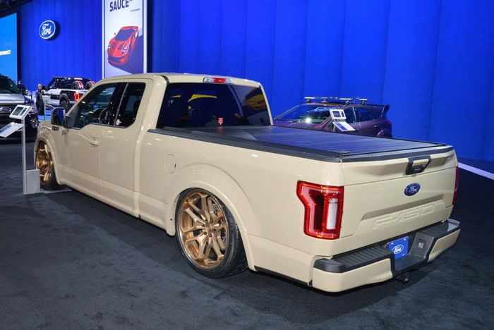 F-150 RK Sport mengusung tema yang berbeda karena dilengkapi dengan lowering kit, suspensi custom, dan mengusung penggerak roda belakang.
