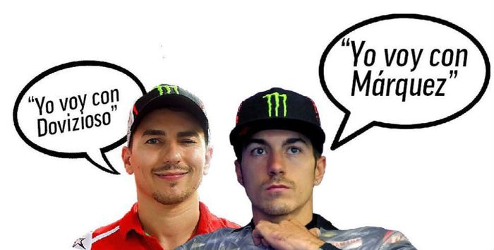 Jorge Lorenzo di meme itu seakan-akan bicara Yo voy con Dovizioso yang artinya Saya akan bersama Dovizioso.