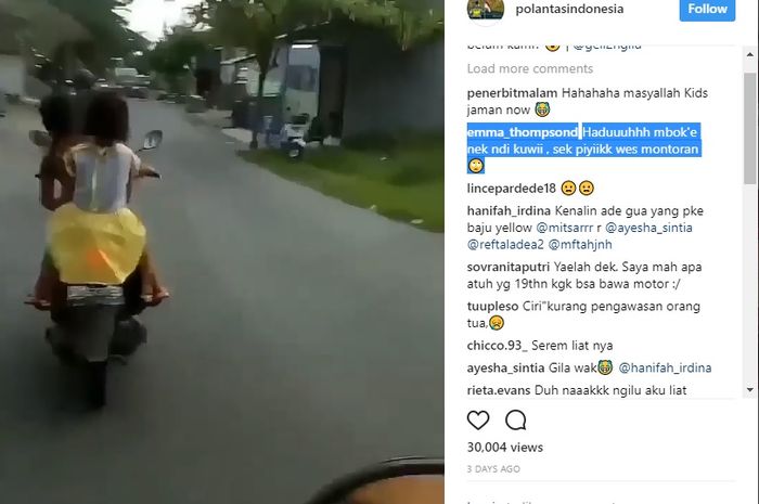 (Aduh kemana ibunya, masih kecil sudah motoran)