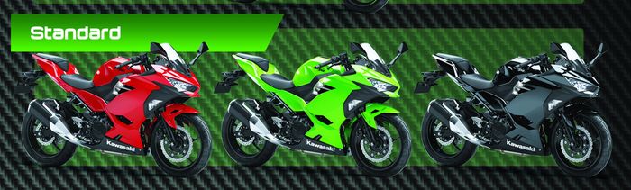 Tipe tertingginya, varian New Kawasaki Ninja 250 yang sudah mengunakan Anti-lock Braking System (ABS) dikelir dengan 2 warna baru.
