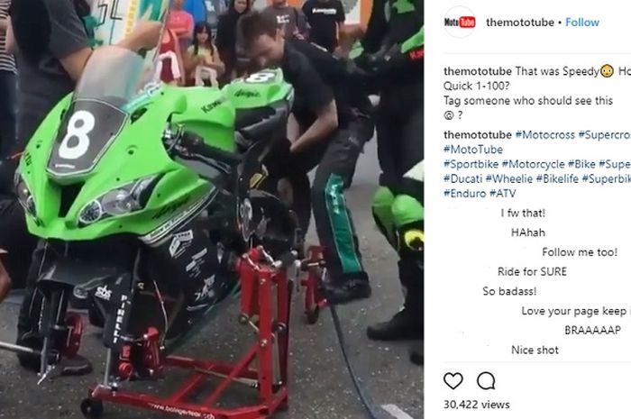 Akan tetapi, video yang diunggah akun Instagram @MotoTube ini dapat menjadi salah satu pitstop pergantian roda tercepat untuk motor.