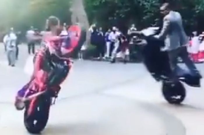 Mereka pun langsung unjuk kebolehan dengan melakukan aksi wheelie.