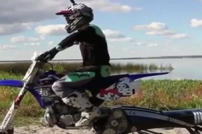 Hal ini terlihat di akun Instagram @motocrossig, seorang pria ngebut pakai motor trail di sebuah danau.