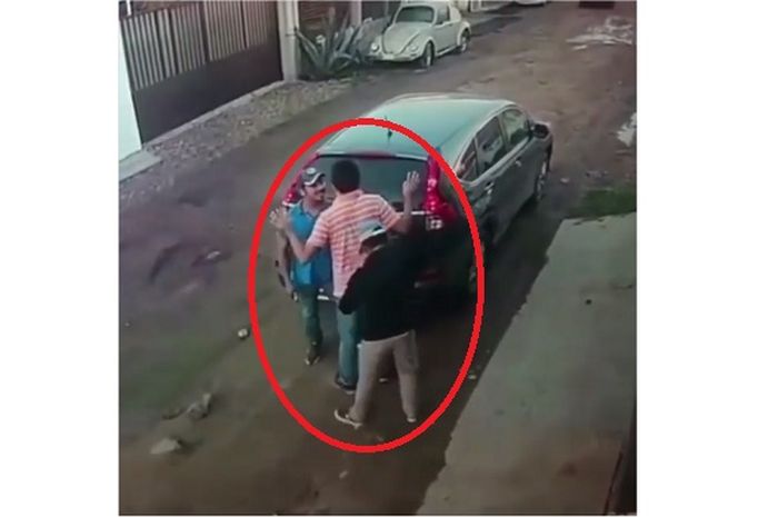 Pria tersebut tampak pasrah ketika dua perampok tersebut mencoba mengancammnya.