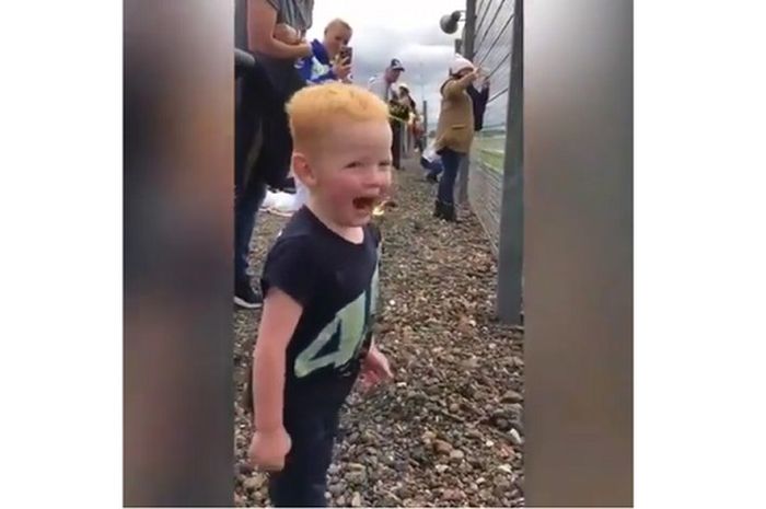 Entah apa yang dirasakan anak tersebut saat menonton MotoGP.