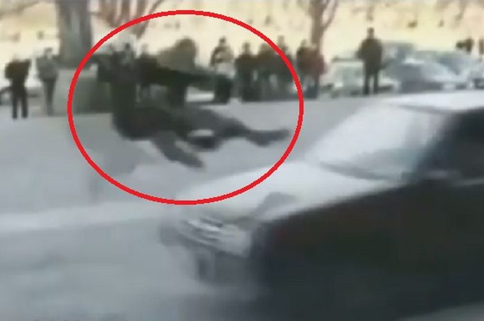 Namun, aksi yang tak biasa terjadi saat seorang polisi menerobos masuk ke mobil dengan memecahkan kaca depan.