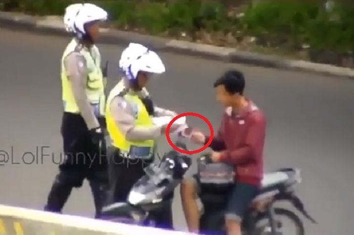 Ternyata sang pemuda mengeluarkan selebaran uang untuk lolos dari tilang tersebut.