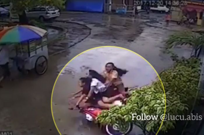 GridOto.com - Ada-ada saja tingkah anak zaman now ini, sudah melanggar peraturan lalu lintas masih harus jatuh ramai-ramai hehe..