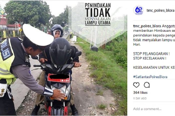 Seperti yang GridOto.com lihat dalam akun instagram @tmc_polres_blora berikut ini.