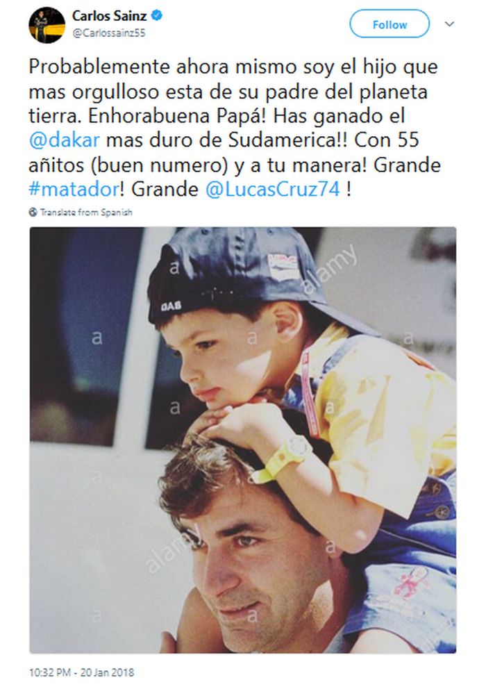 Selamat #matador @CSainz_oficial, selamat @LucasCruz74,” tulisnya di akun Twitter @Carlossainz55.