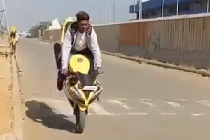 Namun, tiba-tiba saja aksi stoppie-nya gagal.