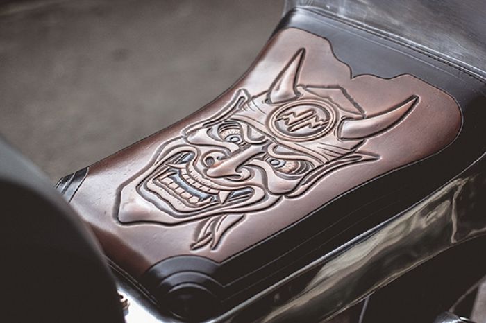 Lihat saja bagian jok serta kotak aki yang menggantung, dua buah karya spesial dari Xian Leather, New York.