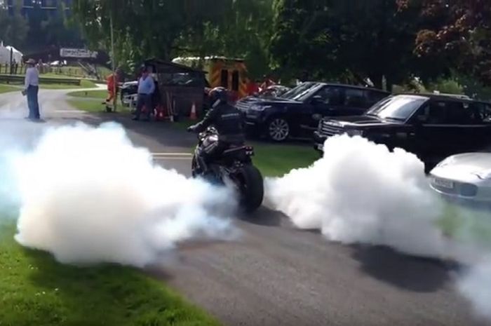 Setelah siap, biker tersebut pun menutup kaca helmya dan mulai berjalan.