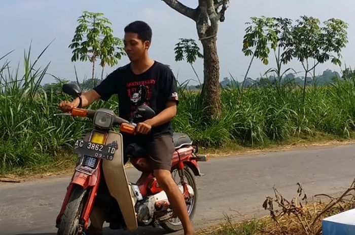Namun, ketika pemuda tersebut menyalakan motor menggunakan kick starter pasti kalian akan pangling.