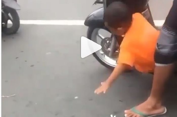 Bersyukur tidak kendaraan lain yang sedang jalan saat si anak terjatuh.