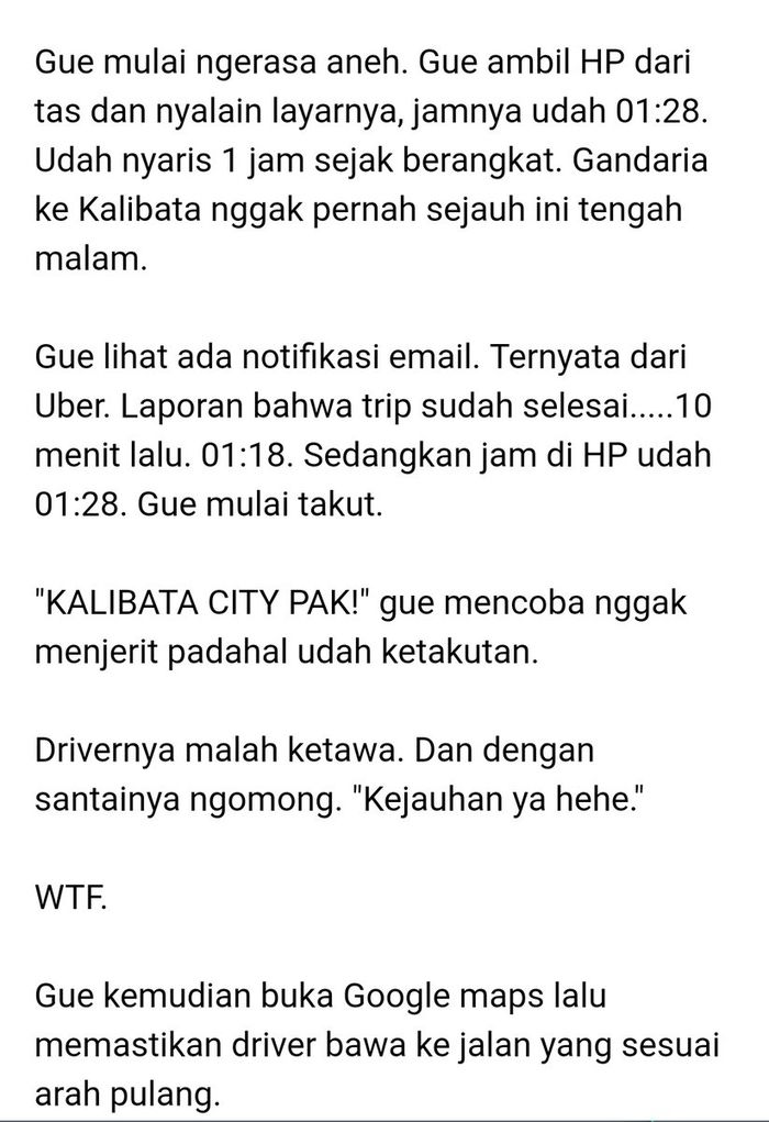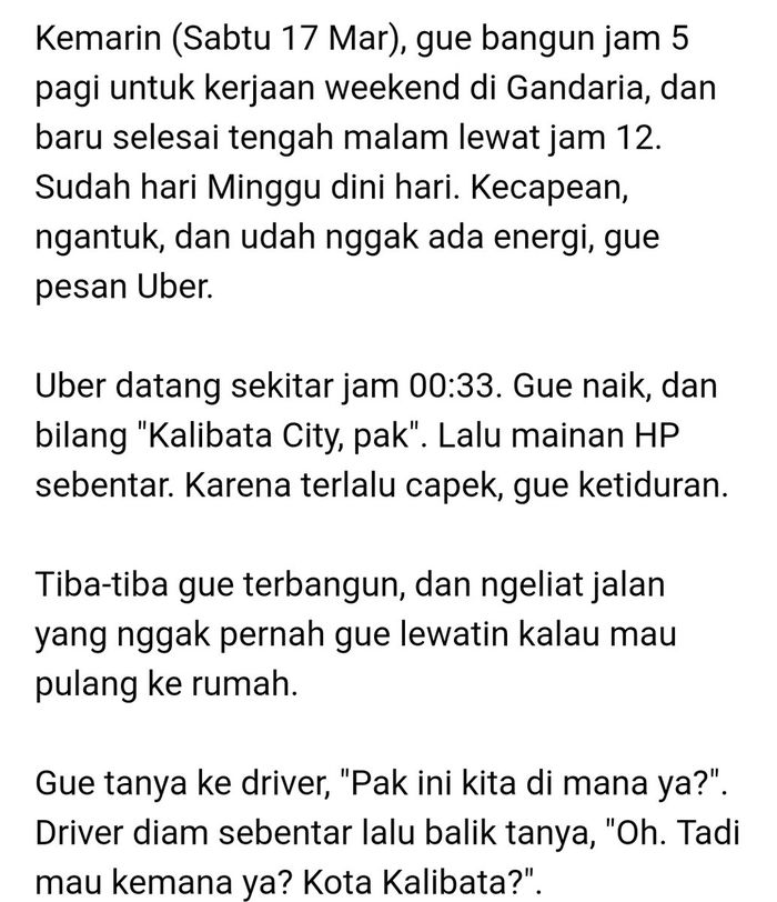 Malam ini pengalaman terburuk gue naik Uber seumur hidup. Gue masih ketakutan.