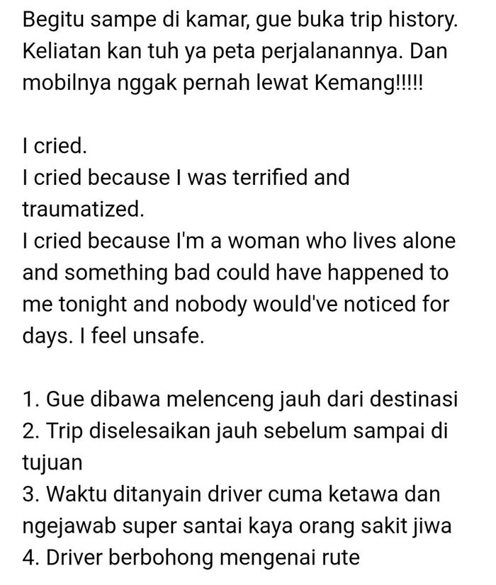GridOto.com- Seorang netizen perempuan bagikan kisah terburuk saat naik taksi online tengah malam.